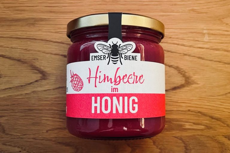 Zutaten: 97 % Honig, 3 % Bio-Himbeeren (getrocknet).