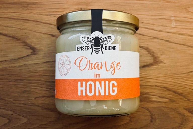 Zutaten: 99,95 % Honig, 0,05 % natürliches kaltgepresstes Orangenöl.