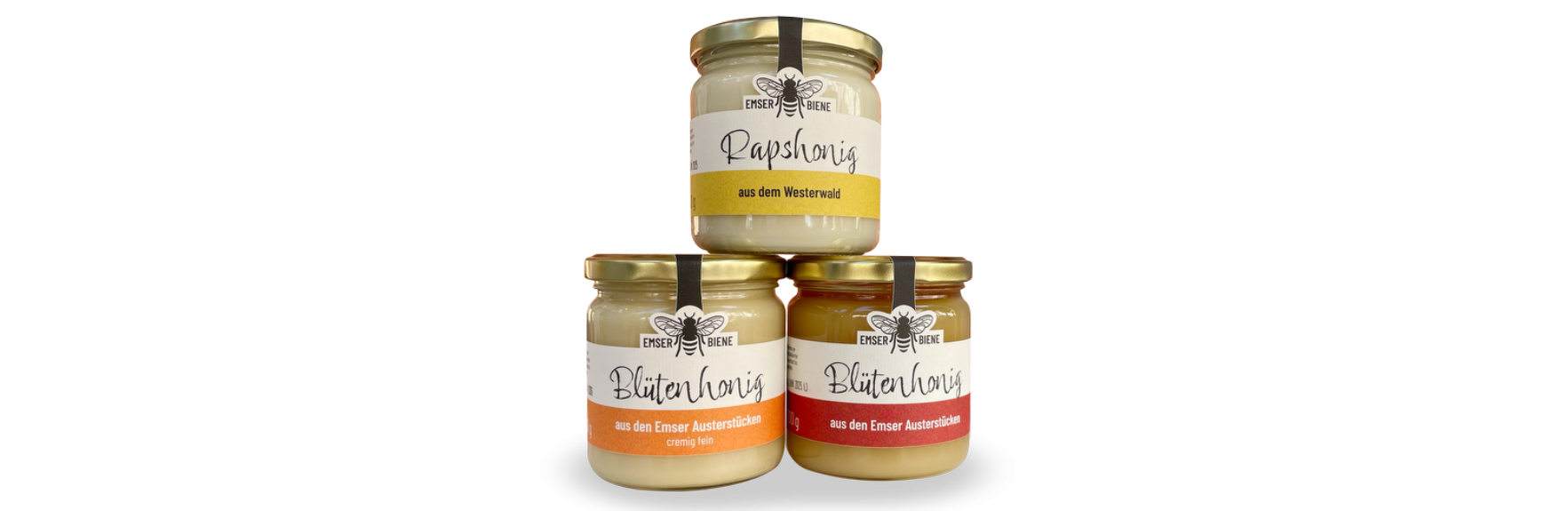 Ein Klassiker unter den regionalen Sorten-Honigen. Unsere Emser "Wander-Bienen" durften im Frühjahr wieder am Rapsfeld ihren Nektar sammeln und fein bestäuben. (Dieser Raps wird nicht gespritzt!)