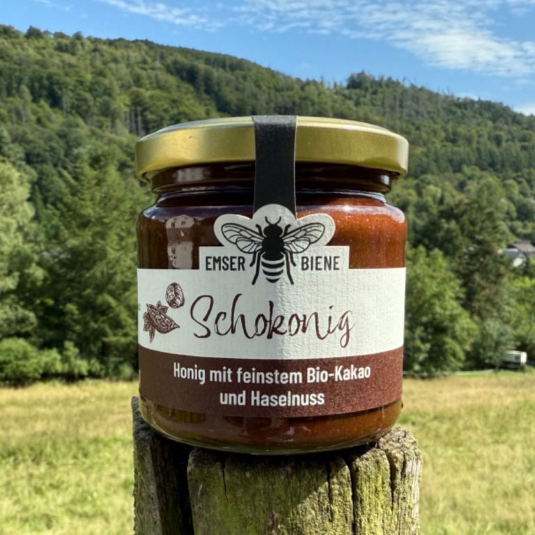 Zutaten: 74 % Honig, 18 % Haselnuss, 8% Bio-Kakao