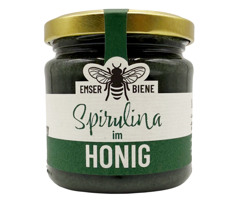 Für den Spirulina Grün Honig verwenden wir das vollständige Pulver der Spirulina-Mikroalge, das für seine intensive grüne Farbe und den charaktervollen, „grünen“ Geschmack bekannt ist. Dieser Honig enthält eine Vielzahl wertvoller Nährstoffe – von pflanzlichen Proteinen bis hin zu Mineralstoffen wie Eisen und Kalzium – und bringt die ganze Kraft der Alge direkt in deinen Honig. Die grüne Spirulina ist reich an Chlorophyll, das dem Honig seine tiefe grüne Farbe verleiht, und lässt sich wunderbar in Smoothies, Müsli oder als zarter Brotaufstrich genießen. Ein echter Genuss für alle, die pflanzliche Superfoods lieben und ihre Ernährung mit wertvollen Nährstoffen bereichern möchten.