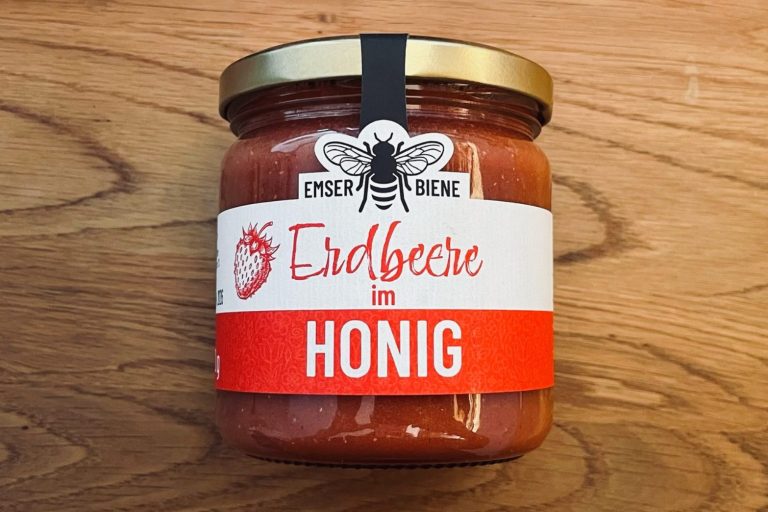Zutaten: 96 % Honig, 4 % Bio-Erdbeeren (getrocknet).