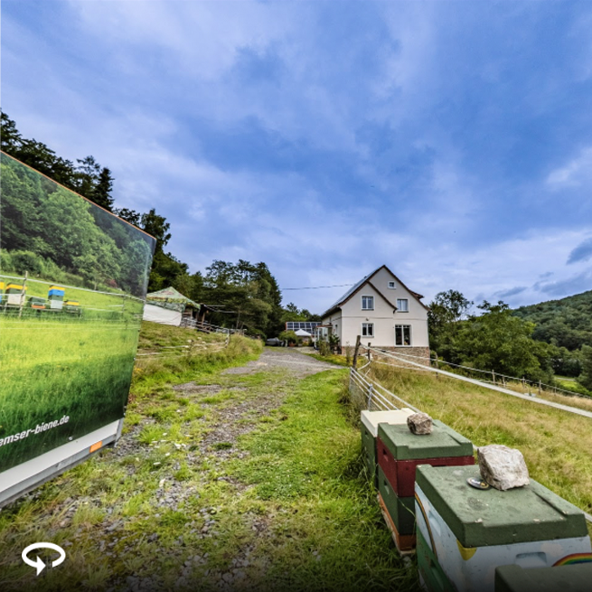 Schon unsere 360 Grad Tour durch die Imkerei gesehen? Klickt auf das Foto und navigiert wie bei Streetview. Seht unsere Imkerei, die Bienen unsere Schafe und unsere angelegten Blumenwiesen.