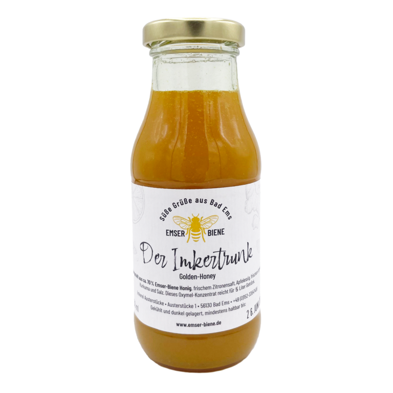 Hergestellt mit ca. 70 % Emser-Biene Honig, frisch gepresstem Zitronensaft, Apfelessig, frischem Ingwer, Kurkuma und Salz.