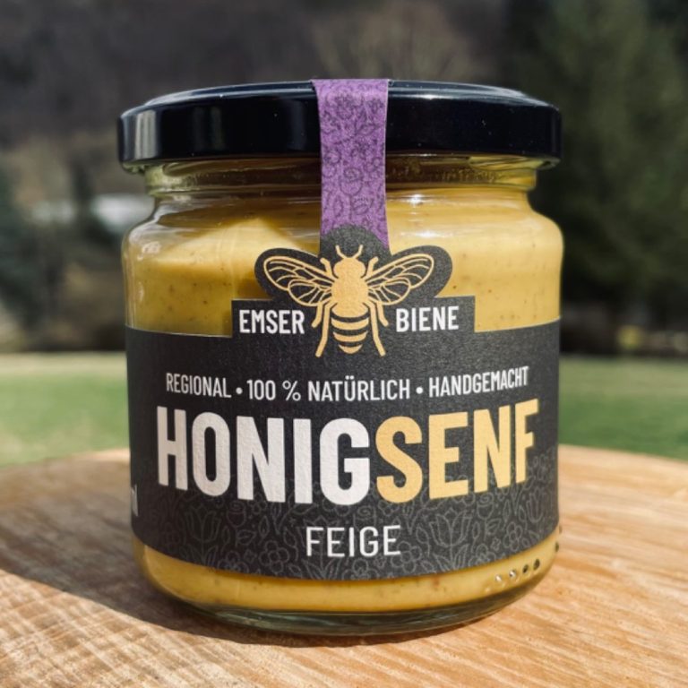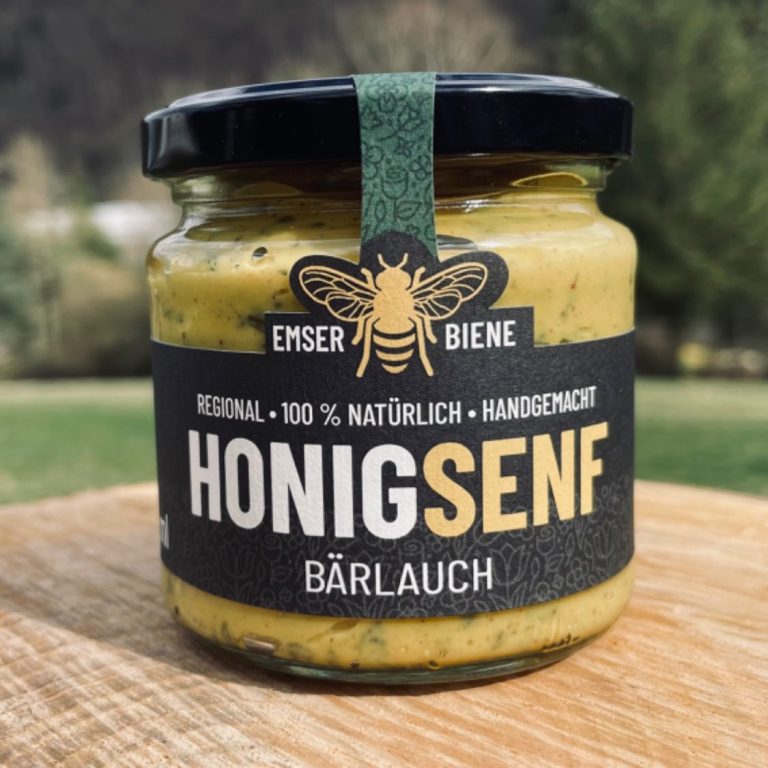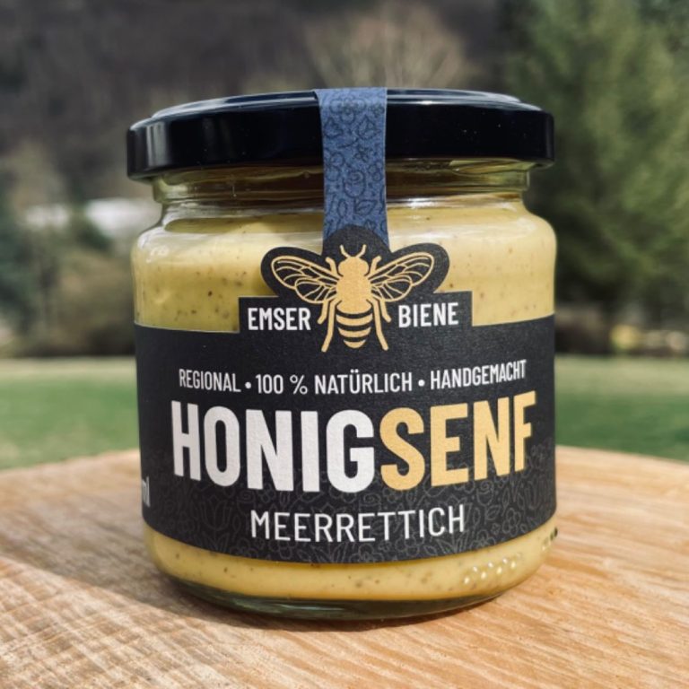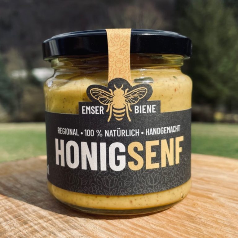 Für Senfliebhaber ein Muss – unser Honigsenf. Hergestellt in einer Senfmanufaktur in der Vulkaneifel ist dieser Honigsenf geschmacklich perfekt abgestimmt – mittelscharf und nicht zu süß. Mit 13 % Emser Biene Sommerhonig.